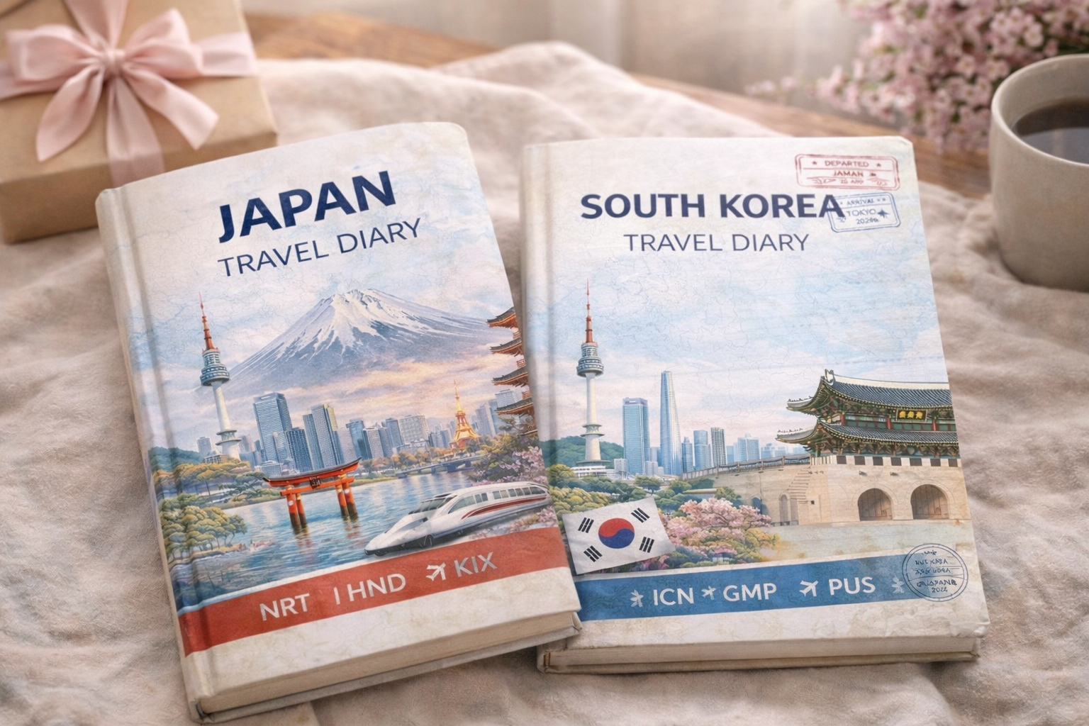 Premium hardcover travel diaries inspired by Japan & South Korea —